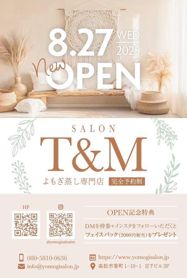沖縄宮古島産のオーガニックよもぎを使用した香川県唯一のよもぎ蒸し専門店