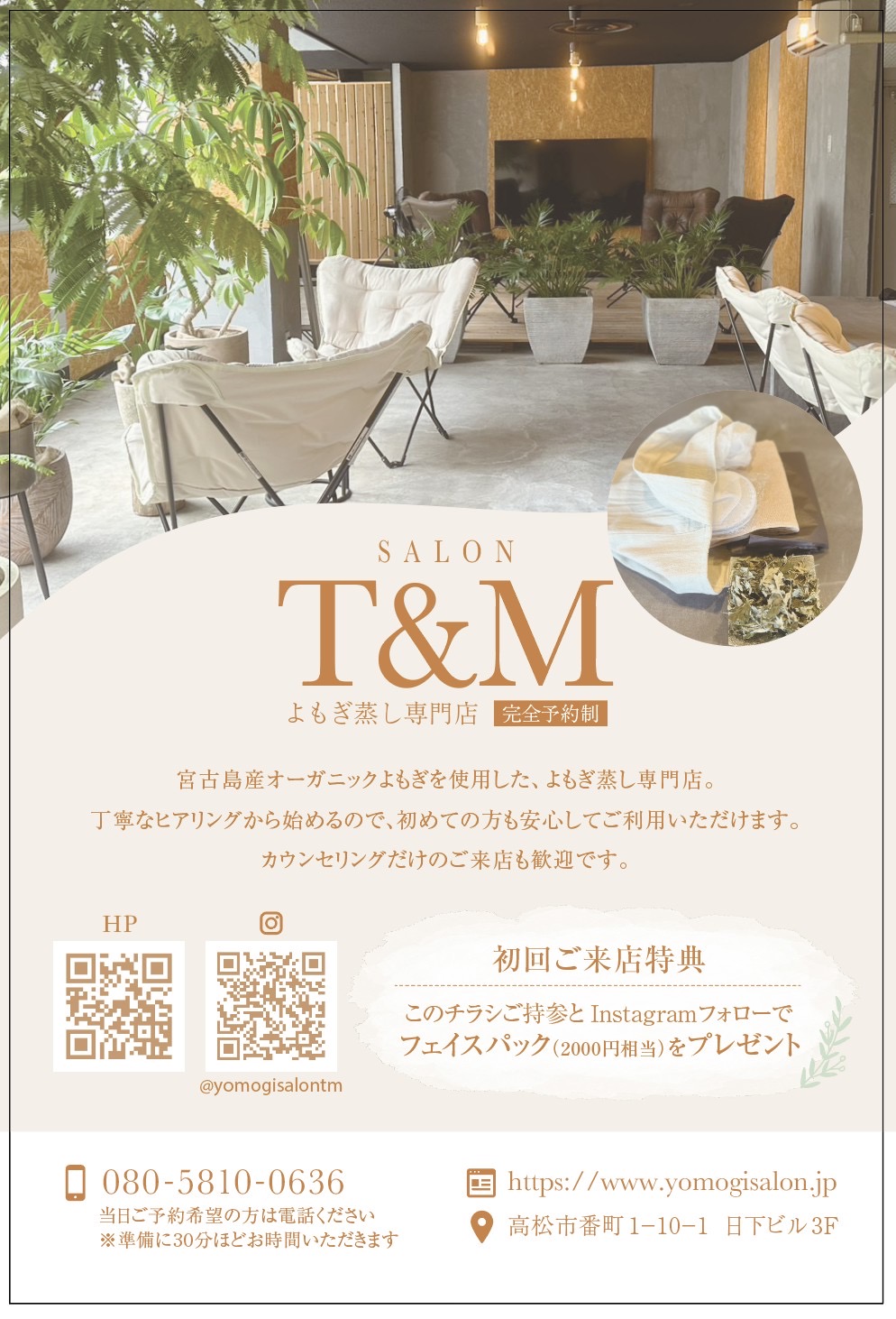 沖縄宮古島産のオーガニックよもぎを使用した香川県唯一の本格的なよもぎ蒸し専門店